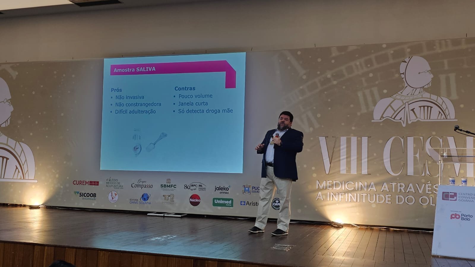 O CESMED é atualmente o maior congresso brasileiro e um dos maiores da América Latina organizado exclusivamente por acadêmicos de Medicina. Realizamos quatro palestras de médicos da SBPC/ML. O patologista clínico, Dr Eduardo Emery, realizou a palestra “Falsos resultados laboratoriais: importância dos interferentes no imunodiagnóstico”. Ele mostrou que falsos resultados laboratoriais podem ter um impacto significativo na prática clínica, levando a diagnósticos errôneos, tratamentos inadequados e até mesmo complicações para os pacientes. Foram abordados os desafios enfrentados no diagnóstico preciso devido a interferências nos resultados laboratoriais e os alunos puderam compreender a importância da qualidade nos testes diagnósticos.